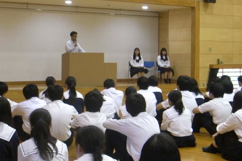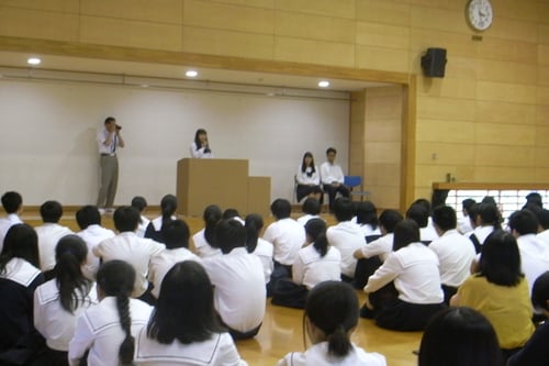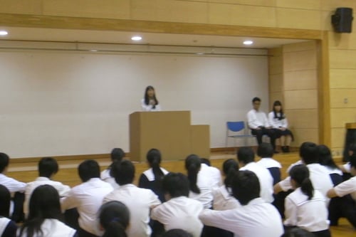 本日、新生徒会執行部の会長、副会長の立候補者が全校生徒の前で所信を表明しました。