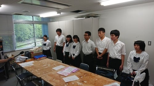 RCCラジオ「ラジプリズム」コーナー内で放送されている10時の時報を、本校生徒のセリフで作成するという企画で、生徒会執行部のメンバーで収録にのぞみました。はじめは少し緊張気味でしたがすぐに和気あいあいとした雰囲気に変わり、みんなそれぞれが色々なアイデアを出して、呉青山のオリジナリティあふれる時報を作ることができました。生徒のみんなもメディアの仕事の一端に実際に参加することができ、とてもよい経験をすることができました。