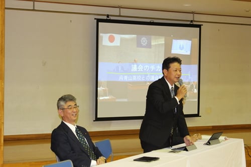 11月8日(金)の7時間目の時間に呉青山高校にて呉市議会報告会が開催されました。現職の市議8名に呉青山高校にお越しいただき、高校生全員に対して呉市議会の活動についてご説明いただきました。続いて生徒自身が直接市議の方々と質疑応答を行いました。