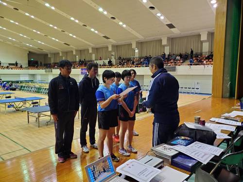 11月9、10日三次カルチャセンターで行われた第65回広島県高等学校新人卓球大会兼第47回全国高等学校選抜卓球大会広島県予選学校対抗の部に呉青山高校卓球部が参加してきました。男女A級に参加し男子は予選リーグで敗退しましたが、女子は予選リーグを2勝0敗で1位で決勝リーグに進出しました。決勝リーグでは勝てませんでしたが県大会4位で12月20日~22日に呉市総合体育館で行われる第47回全国高等学校選抜卓球大会中国地区予選会に出場することが決まりました。中国大会では全国大会出場を目指し頑張ってもらいたいと思います。
