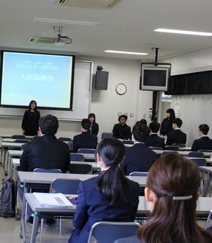 過去ブログ · 2019/11/19 高校入試説明会の実施 11月16日(土)中学3年生を対象に高校入試説明会を開催しました。学校案内・入試説明の後は、入試本番さながらの模擬試験を実施。その後、解説授業を行いました。受験生の皆さんは、緊張感をもって真剣に取り組んでくれました。入試の雰囲気を感じてくれたことでしょう。受験生の皆さん、これから一段と寒くなりますので、体調に十分気を付けてください、そして最後まで、自分の力を十分に出し切れることを願っています。呉青山高校では、入試直前まで出来る限りの支援をさせていただきます。 tagPlaceholderカテゴリ: recruit