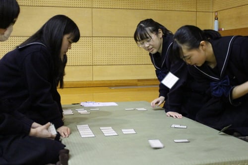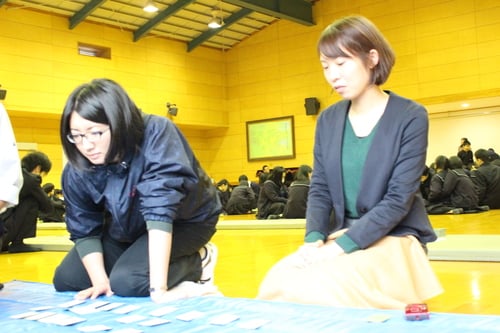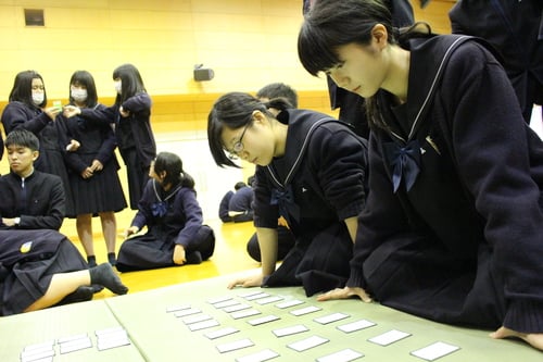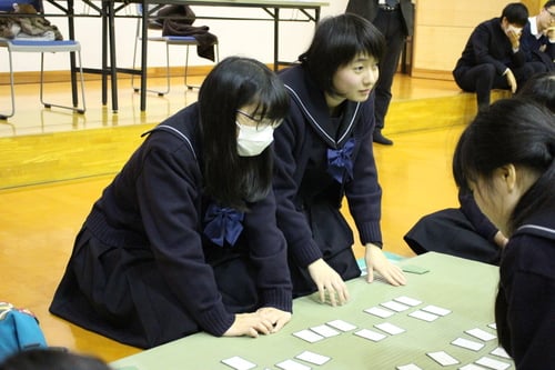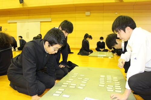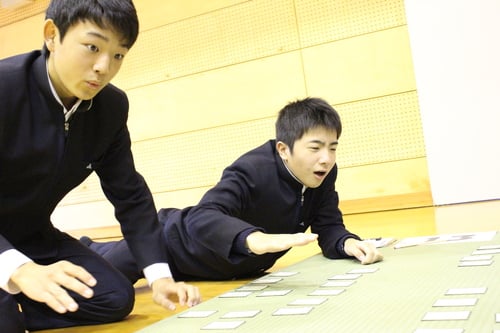 12月19日(木)に呉青山中学・高等学校の伝統行事である百人一首大会が行われました。2019年の最後に行われる大きな行事でした。みんなも1年を通して頑張って覚えてきた努力の成果を百人一首という競技を通して発揮しようと一生懸命取り組みました。中学1年生から高校2年生までが分け隔てなくトーナメント方式で同じ土俵で競いました。先輩は威厳をかけ、後輩は下克上を狙い大いに盛り上がりました。優勝した高校2年生のペアも最初は中学1年生で参加し、先輩たちの姿を見ながら成長してきました。脈々と受け継がれる伝統を垣間見ることができた呉青山ならではの大会でした。