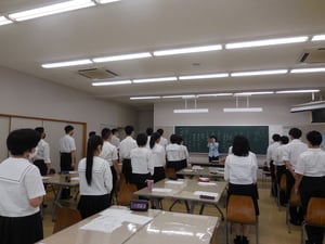 令和2年7月17日(金)外部講師の先生をお招きし,高校生の各学年に基本となる立ち方・座り方・礼の種類について実技を交えて指導していただきました。また,高3生には面接でのポイントについても教えていただきました。短時間でしたが緊張感をもって行い,姿勢の良さを褒めていただくこともでき,充実した時間となりました。授業後も,これから日常の中で意識して実践し,身につけていこうと練習する姿もありました。