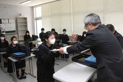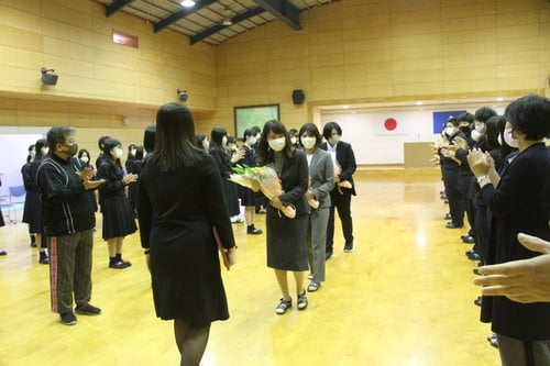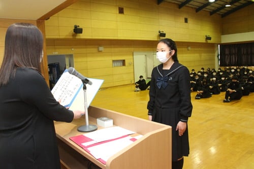 3月18日(金)に呉青山中学校3年生修了式,3学期終業式および離退任式が行われました。中学3年生は3年間の学びを終え,修了証書を手に4月から始まる高校生としての新たな生活に向けて目を輝かせていました。4月に登校したら「高校生」ですね! 終業式やホームルームでは,学年末であることを意識し,この1年間をふり返り,「次年度にどうしたいか,どうなりたいか」を一人一人が今一度考えました。離退任式では,3名の先生方に大きな拍手で見送っていました。