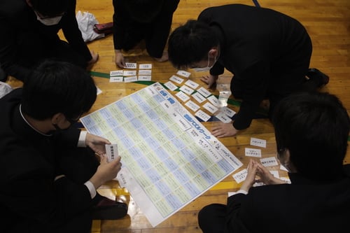 高校1・2年生は本日の1~3時間目を利用して,校内進路ガイダンスを実施しました。高校1年生は,「フレンドシップワーク」ですごろくの質問に答える形で他者理解を深めるとともに,「77+3パズルワーク」で現在ある職業について学びました。これらのグループワークを通して新しい仲間とコミュニケーションを図り,仲を深めることができたようです。高校2年生は,進学意識を高めて大学受験に対する心構えを身に付けることを目的に,入試対策・勉強方法の効率化に関する講話を聞き,勉強のモチベーションの高め方や,今から大学受験に向けて小論文や志望理由書などの準備しておくことの重要性を学ぶことができました。そろそろ授業も本格的に始まりますので,今日学んだことを今後の生活にいかし,好調な新年度のスタートを切ってほしいと思います。