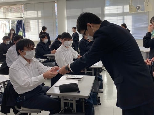 学校生活 · 2022/11/25 受験生に「合格種」のプレゼント 中学部全員が、青山花壇で育てたひまわりと朝顔の種を使って作ったオリジナルブランド「合格種」を本日、高校3年生にプレゼントしました。中学3年生が代表して高校生に手渡し、中学1・2年生はグランドから声援をおくりました。中学生の気持ちが詰まった合格種を喜んでもらって、中学生もご満悦でした。一生懸命作っていたので良かったですね!中学生! 高3生も、後輩からの温かいプレゼントをお守りに、残りの時間も精一杯頑張ってください。 tagPlaceholderカテゴリ: life
