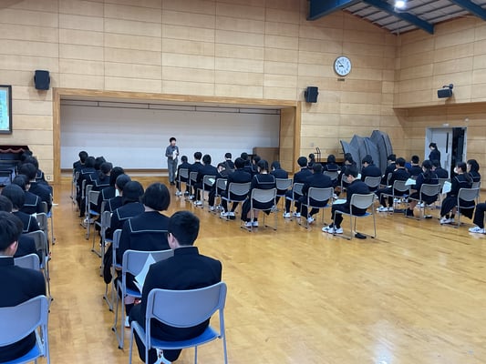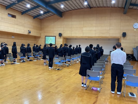 学校生活 · 2024/04/12 中学部 生徒指導オリエンテーション 4月12日(金)、1時間目に中学部では生徒指導オリエンテーションを行いました。 登下校や学校生活、情報端末に関するルール、挨拶や基本的な生活マナーなどについて説明しました。 礼節については、就職活動の面接でも対応できるような美しい所作として、3歩で立ち上がり、3歩で着席する『3足』の練習をしました。2、3年生の体に染みついた動作を見本に1年生も挑戦しました。全員で揃ってできた際には自然と笑顔が溢れていました。 この日に学んだことを生かして、よりよい学校生活を送っていきましょう。 tagPlaceholderカテゴリ: life