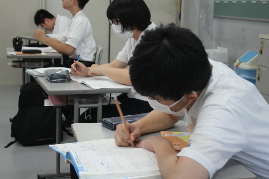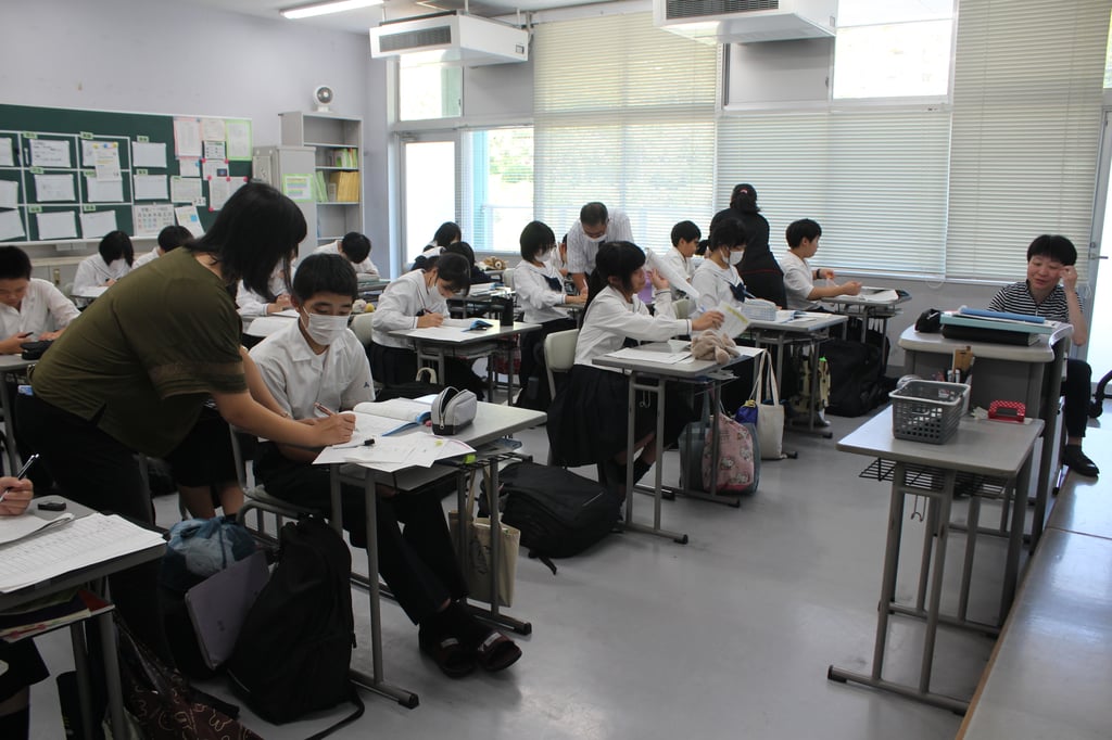 呉青山中学校では学習時間の確保・自学自習の姿勢の確立を目的として、定期試験前の約1週間、放課後に学習会を開催しています。ワークでわからなかったところを聞く生徒、タブレットに配信された課題を使って理解度を確認する生徒など、自分たちで何をすればいいか考えて取り組むことが出来ました。(もちろん高校生も頑張ってますよ!)