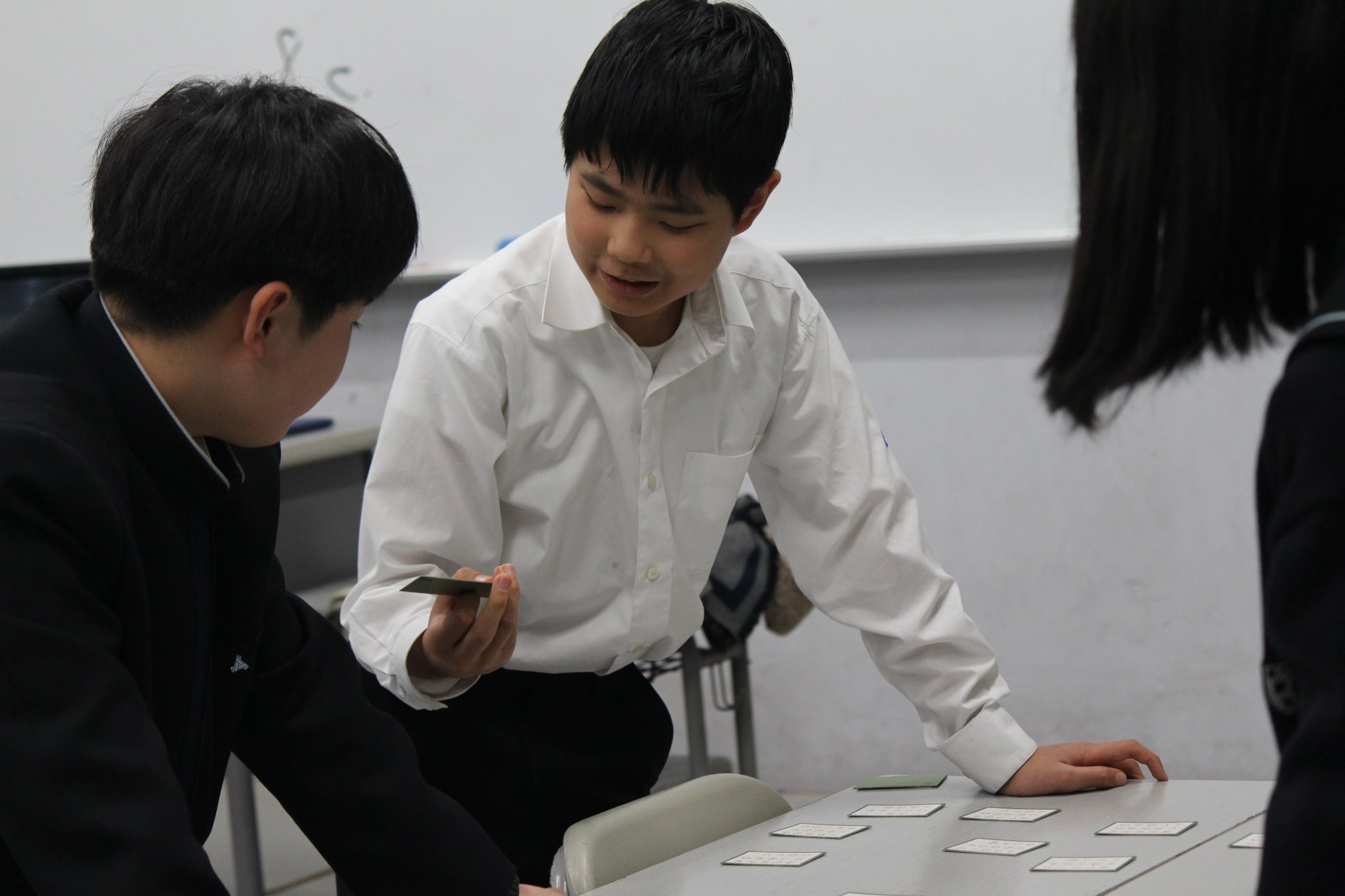 学校生活 · 2024/12/13 百人一首の模擬試合をしました(中学部) 12月13日(金)の6時間目は、中学1・2・3年生が合同で百人一首の模擬試合を行いました。 ルールの曖昧な1年生に優しく教えつつも、試合になれば「本気でやるのが礼儀」と言わんばかりに先輩としての威厳を見せつけていました。12月20日が高校生も含めた百人一首大会の本番です。1枚でも多くとれるように練習頑張りましょう! tagPlaceholderカテゴリ: life
