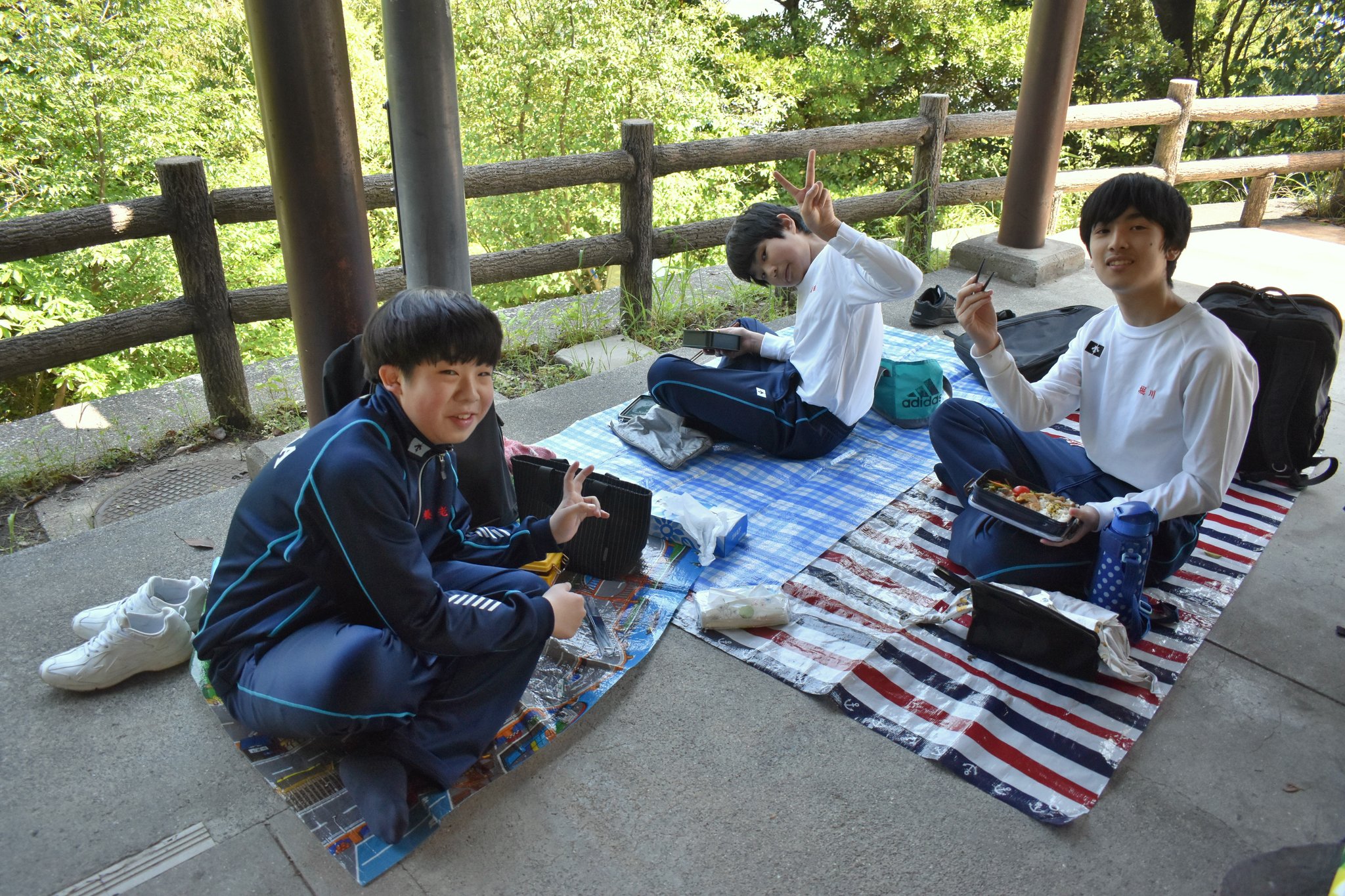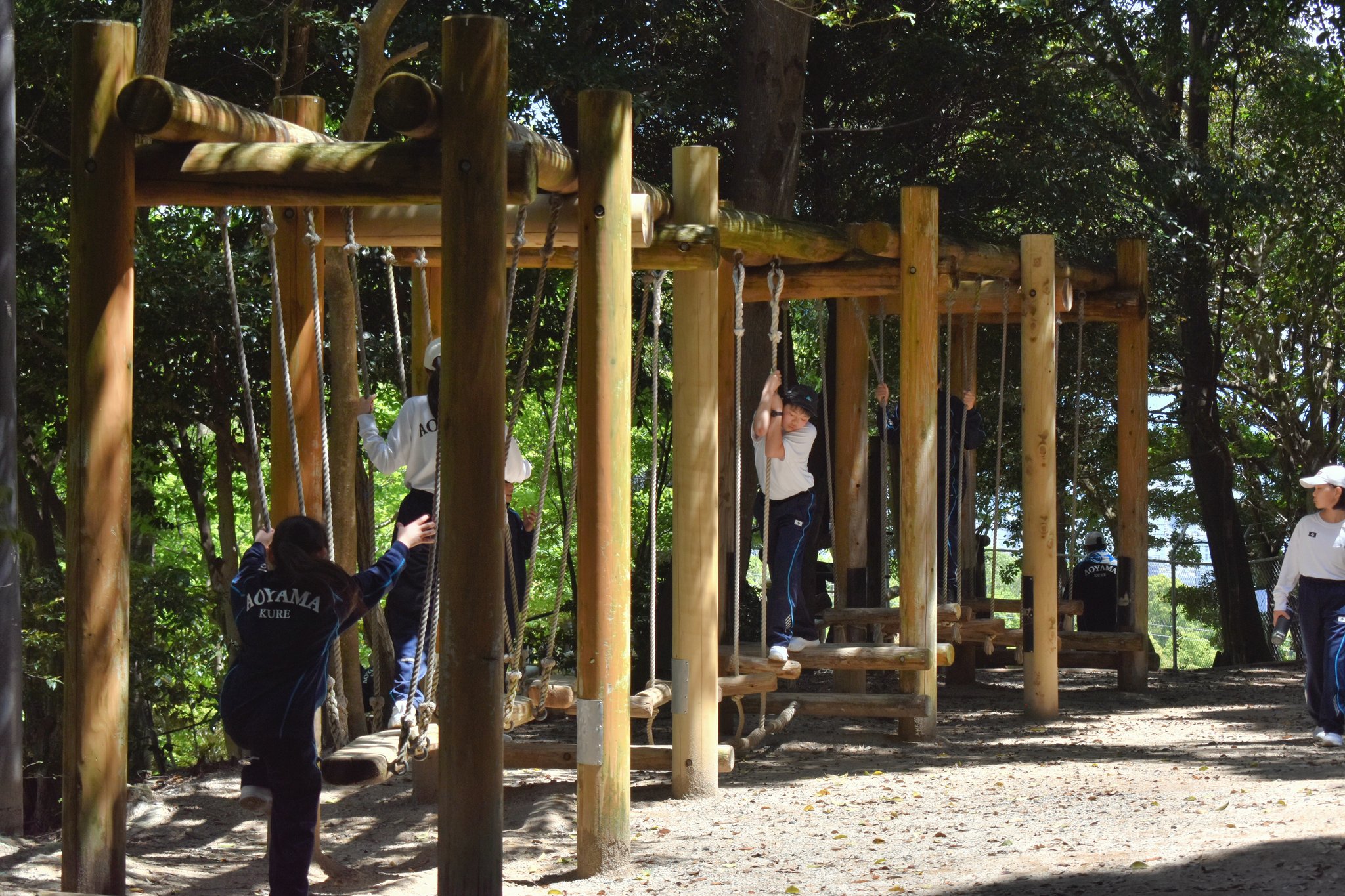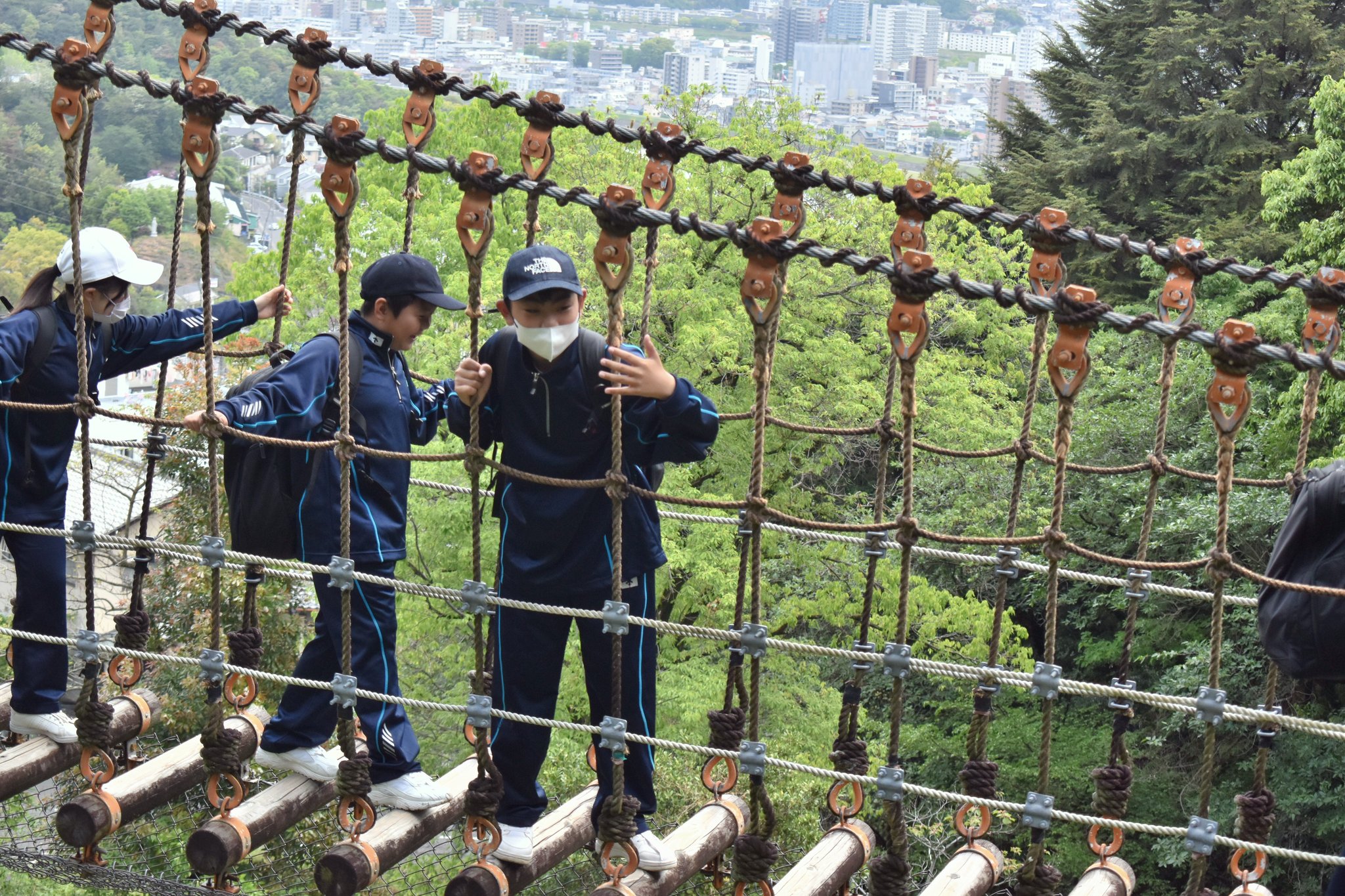 しか~し、遠足当日は「行ってらっしゃい」の青空!はい、行ってきました、三滝少年自然の家。自然の中をみんなでわいわい、気持ちもhigh⤴にハイキング。頂上から見るパノラマの景色、自然の中に溶け込んだ私たち。もう満足度も120%とはみ出てしまいました。いつもより2割増しでおいしく感じたお昼ご飯の後はアスレチックを満喫してハッスルし、いつの間にか帰りの時間。「もう帰るの?」という正直な気持ちを顔中で表現しながら、今日の思い出もちゃんと心のポケットに詰め込んで、バスに乗り込む生徒たち。